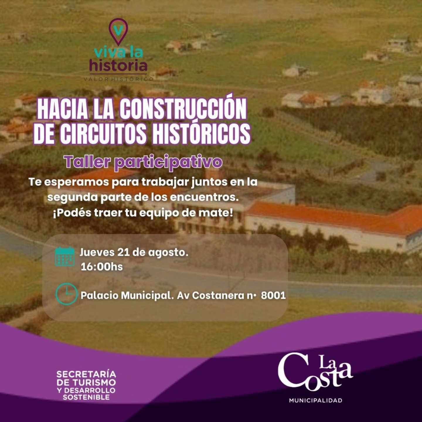 Los talleres tienen como objetivo identificar, revalorizar y poner en valor lugares, relatos y tradiciones que forman parte de la memoria colectiva, contribuyendo al diseño de circuitos históricos que fortalezcan la identidad del Partido de La Costa y enriquezcan la experiencia de visitantes y residentes.