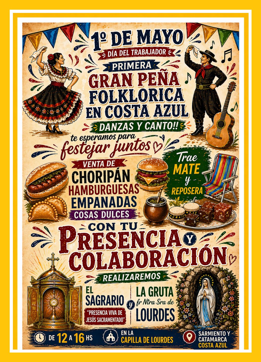 Mañana viernes 1 de mayo, por el Día del Trabajador y la Trabajadora, se realizará en Costa Azul la Primera Gran Peña Folklórica.