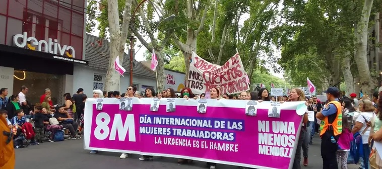 La movilización coincidió además con las actividades por el 8 de marzo, Día Internacional de la Mujer Trabajadora. Organizaciones feministas nucleadas en Ni Una Menos Mendoza participaron de la marcha con consignas vinculadas a la defensa de los derechos laborales, la lucha contra la violencia de género: “Por la soberanía de nuestros cuerpos y territorios. En defensa de nuestros derechos laborales. Contra la violencia y la represión de Cornejo y Milei. Fuera Riili”, este último es el comisario Mario Riili investigado por detención ilegal de manifestantes, violencia institucional y de género por la particular saña contra las mujeres que se movilizaron el 23 de octubre pasado en defensa del agua.