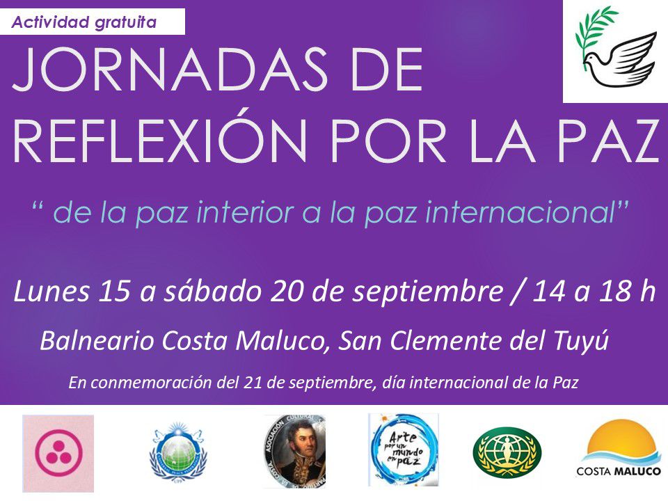 En el marco de la conmemoración del Día Internacional de la Paz —que se celebra cada 21 de septiembre—, San Clemente del Tuyú será escenario de las Jornadas de Reflexión por la Paz, bajo el lema “De la paz interior a la paz internacional”.