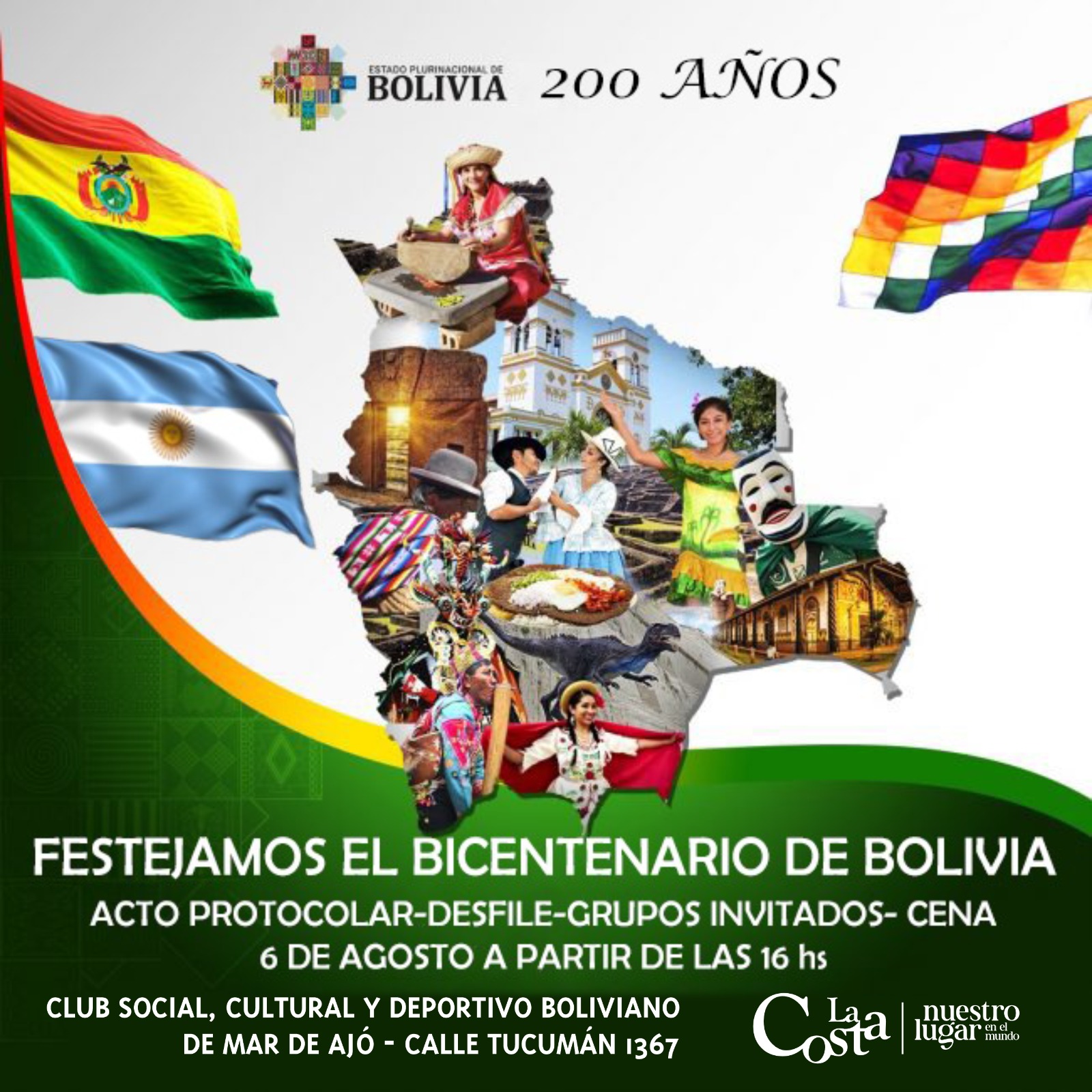 Los festejos -que cuentan con el acompañamiento y apoyo de la Dirección de Instituciones de Bien Público de la Municipalidad de La Costa, a cargo de María Laura Escalante- culminarán por la noche con una cena típica. «Todos los países latinoamericanos tenemos que recordar, conmemorar y festejar estas fechas tan importantes vinculadas a la independencia de nuestras naciones», consideró el secretario del Club Social, Cultural y Deportivo Boliviano de Mar de Ajó, Ronald Espinoza Patzi.
