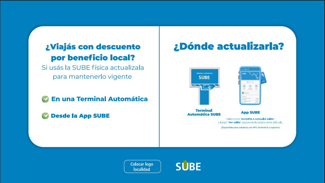 Se recuerda a los usuarios que viajan con la tarjeta SUBE física y cuentan con descuentos locales, que es importante mantener la tarjeta actualizada para garantizar que los beneficios se apliquen correctamente al momento de viajar.